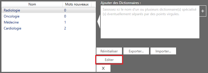 L'outil de gestion de l'enrichissement du dictionnaire spécialisé s'affiche :
